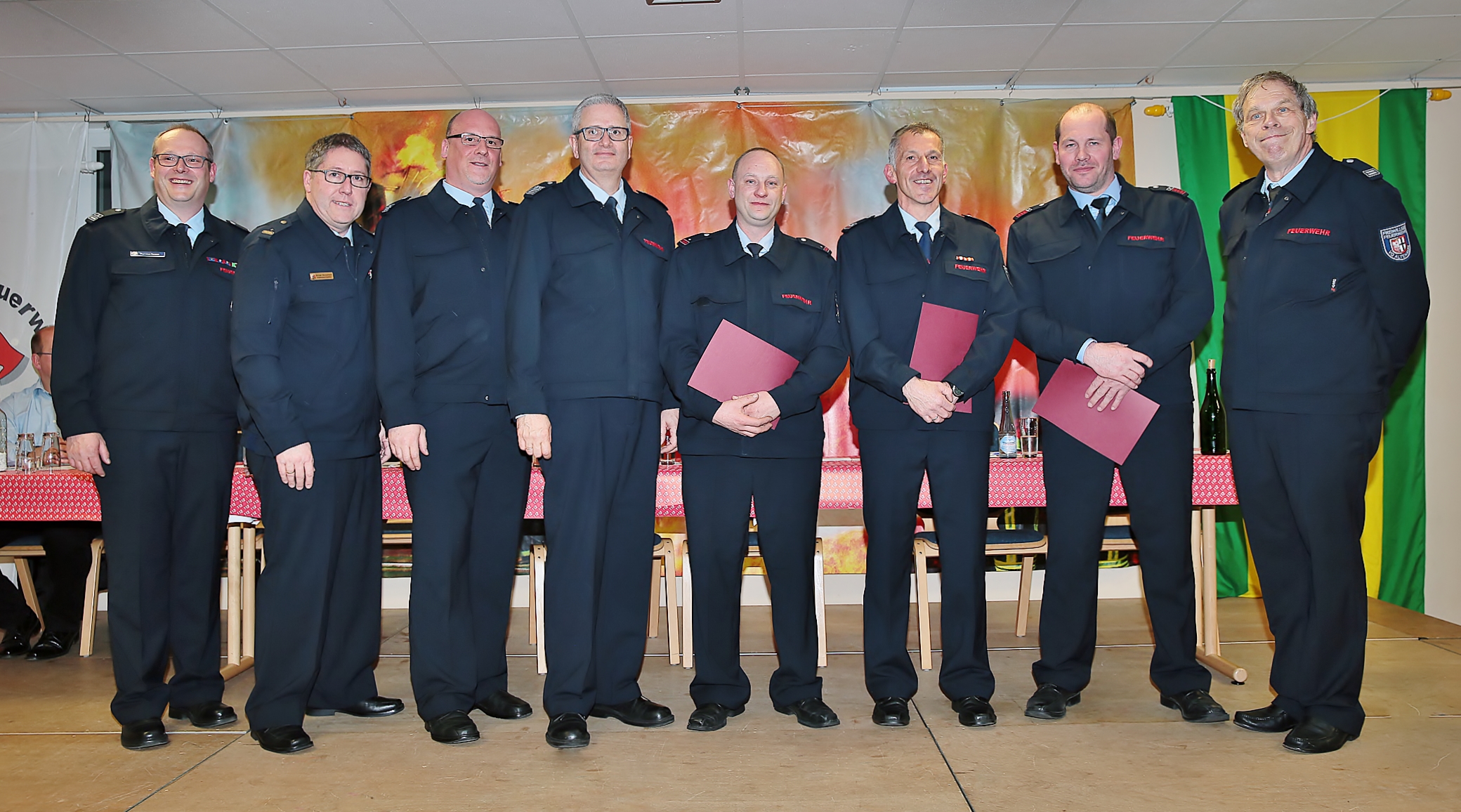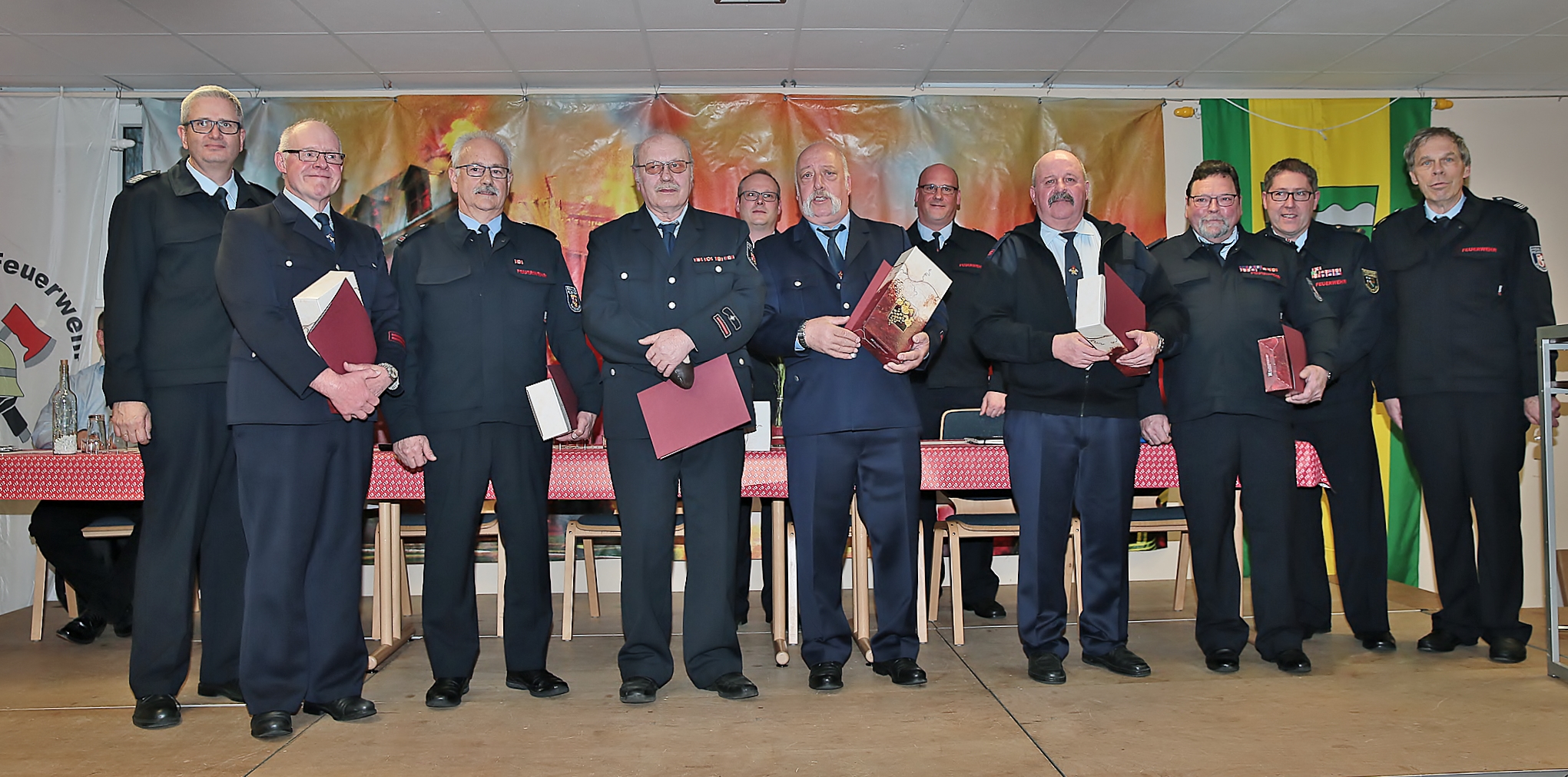 Unser langjähriges Mitglied und ehemaliger Wehrführer Clemens Schier (4.v.l.) wurde auf der Dienstversammlung 2019 verabschiedet.